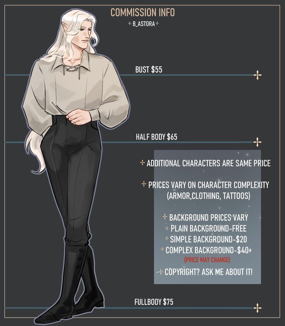 Hello! I'm Astora! Self taught artist that likes to focus on fantasy and romance aesthetics!Thanks for stopping by! You will find my Tos, commission info, and art portfolio below!!! Thank you all for the support <3